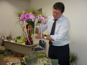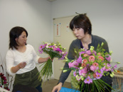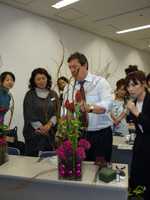 各レッスン前にはデモンストレーションと講義を行い、その後に作成する作品の解説とフランス事情なども交え、 日本とフランスの花の違いやパリの見所など、季節感を交えたお話もあり、 すぐにでもパリに行きたくなるような、そんな気分にもさせてくれました。
